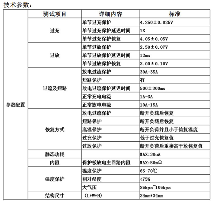 過(guò)充電電壓:4.250±0.025V