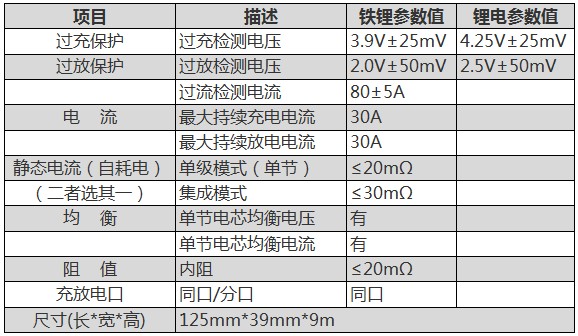 過充電電壓:3.9V±25mV